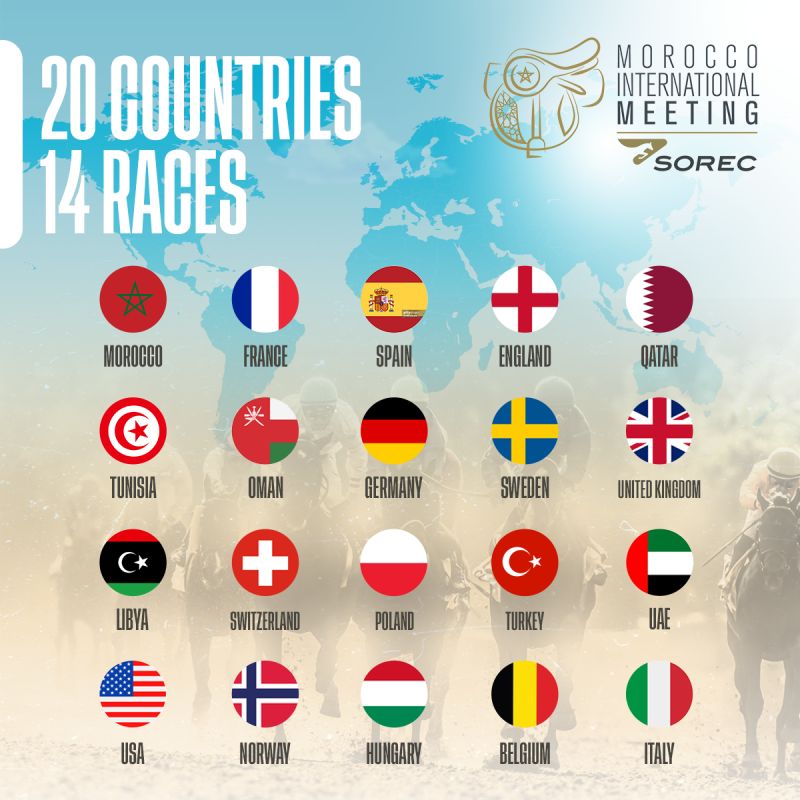 Jockeys, propriétaires et éleveurs de chevaux du monde entier seront présents pour la 10e édition du Morocco International Meeting. Découvrez la liste complète des pays participants et plongez dans cet événement d’exception ! 🏇 🔗 Pour plus d’informations : mim.sorec.ma